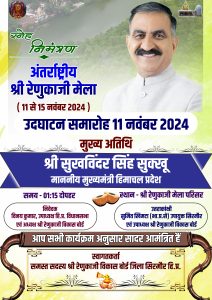 शिमला || 11 नवम्बर 2024 || जिला सिरमौर में आज अंतरराष्ट्रीय श्री रेणुका जी मेले का शुभारम्भ किया गया। इस अवसर पर मुख्यमंत्री ठाकुर सुखविंद्र सिंह सुक्खू ने ददाहू में भगवान परशुराम की पालकी को कंधा देकर शोभायात्रा की अगुवाई की।