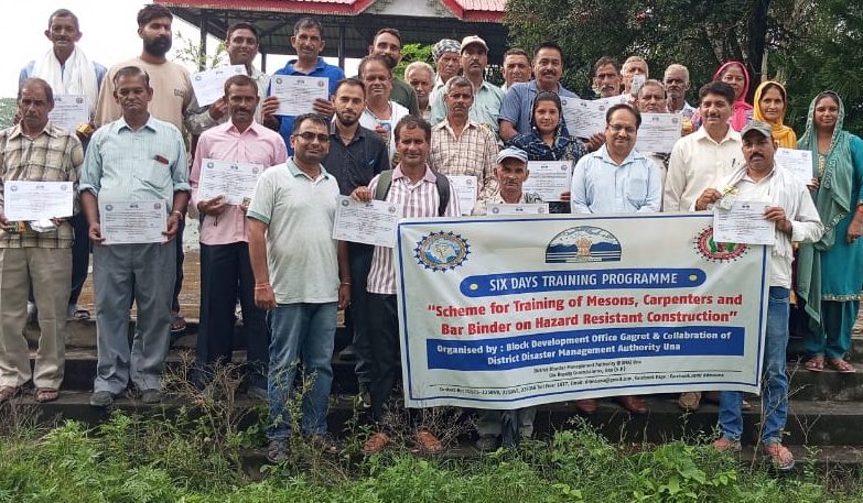 विकास खंड गगरेट के अंतर्गत कार्यरत राज मिस्त्रियों के लिए भूकंपरोधी भवन निर्माण तकनीक पर 6 दिवसीय विशेष प्रशिक्षण कार्यक्रम सोमवार को सफलतापूर्वक संपन्न हुआ। यह शिविर जिला आपदा प्रबंधन प्राधिकरण, ऊना के सौजन्य से आयोजित किया गया, जिसमें 35 राज मिस्त्रियों ने भाग लिया।