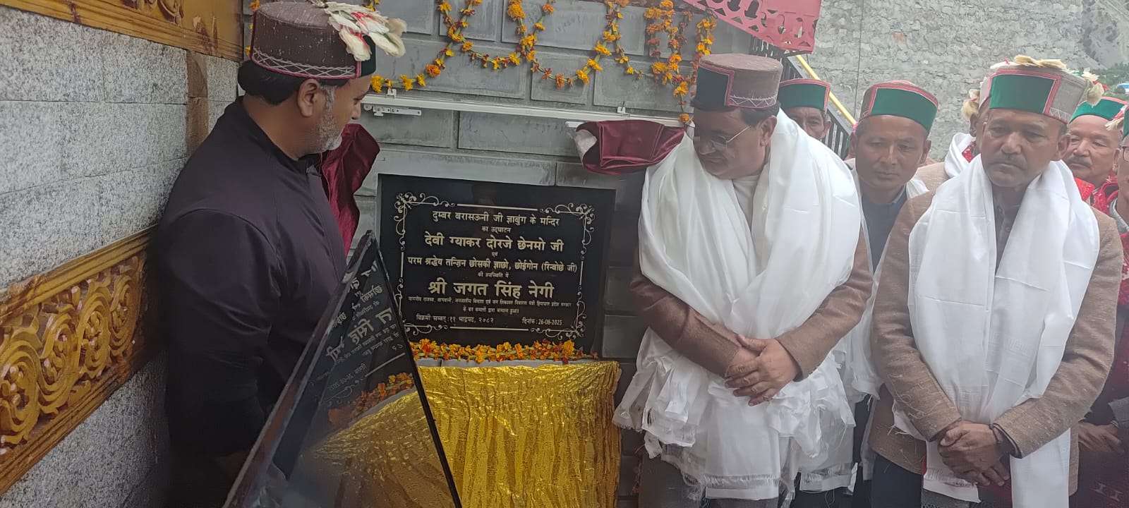 राजस्व, बागवानी, जनजातीय विकास एवं जन शिकायत निवारण मंत्री जगत सिंह नेगी ने आज वर्चुअल माध्यम से जिला किन्नौर के पूह उपमंडल की ग्राम पंचायत ज्ञाबुंग में नवनिर्मित देवता दुंबर बरासऊनी जी के मंदिर का उद्घाटन किया और स्थानीय ग्रामवासियों को मंदिर के निर्मित होने पर हार्दिक बधाई एवं शुभकामनाएं दीं।