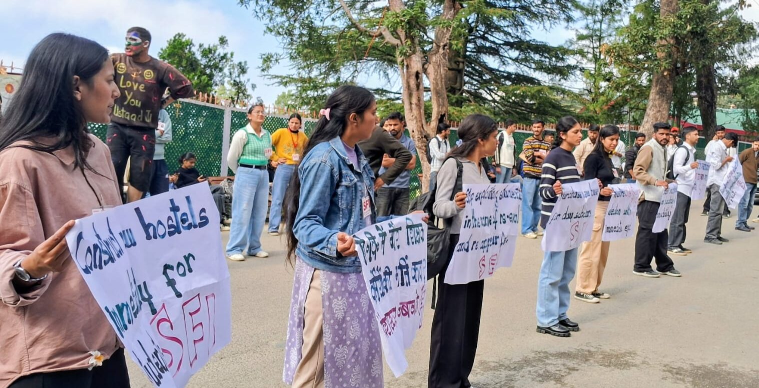 एसएफआई हिमाचल प्रदेश विश्वविद्यालय इकाई ने बुधवार को विश्वविद्यालय परिसर में नुक्कड़ नाटक और धरना प्रदर्शन आयोजित किया। एसएफआई ने इस अवसर पर परीक्षा प्रणाली में अनियमितताओं, छात्र सुविधाओं की कमी और छात्र संघ चुनावों की बहाली को लेकर अपनी चिंता व्यक्त की।